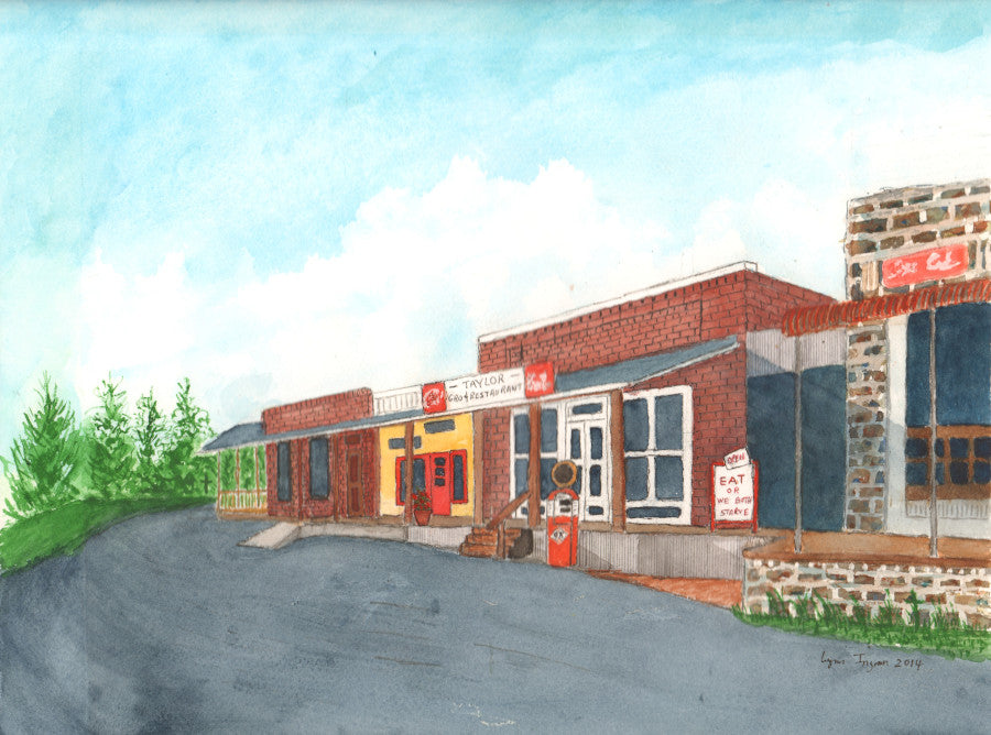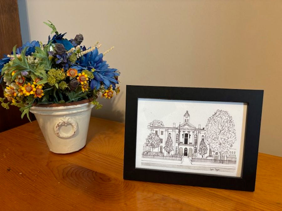These 5 by 7 prints are of around Oxford, Mississippi. Drawings or paintings of these locations might be with pen and ink or watercolor. I plan to add a number of other sites around Oxford and am currently drawing Square Books.
